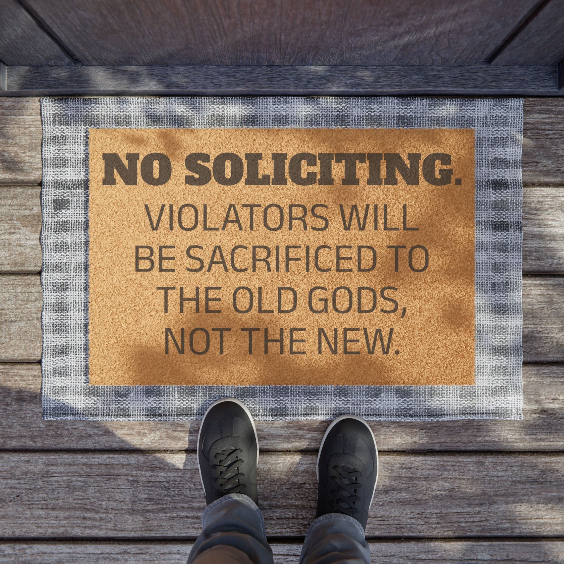 Knock knock... who's about to regret their life choices? This doormat lays it all out, no pamphlets, no pyramid schemes, and absolutely no modern nonsense. Violators will be sacrificed (politely, of course) to the Old Gods, because they appreciate a good offering and actually answer prayers.